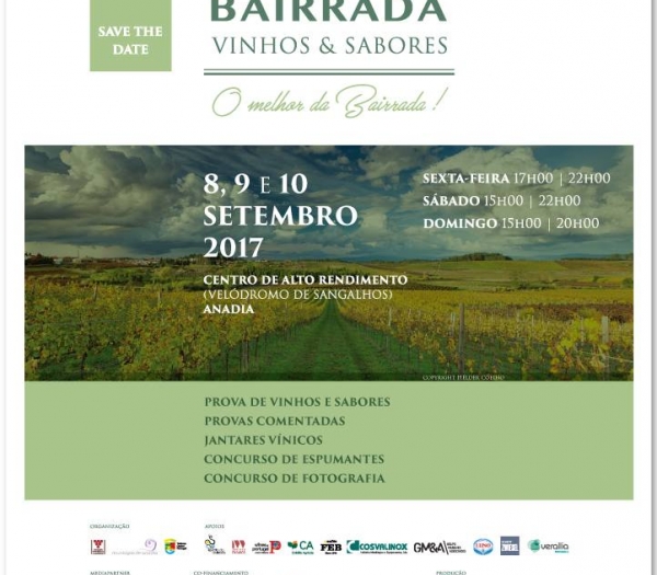 O 'BAIRRADA Vinhos & Sabores 2017' é promovido pela Comissão Vitivinícola da Bairrada, pelo Município de Anadia e pela Turismo do Centro de Portugal, estando a sua produção a cargo da equipa de sempre, agora a liderar a novíssima revista VINHO Grandes Escolhas. Conta com o apoio da Rota da Bairrada, do Instituto da Vinha e do Vinho, da ViniPortugal, entre outras entidades, e com o financiamento do PO CENTRO2020.