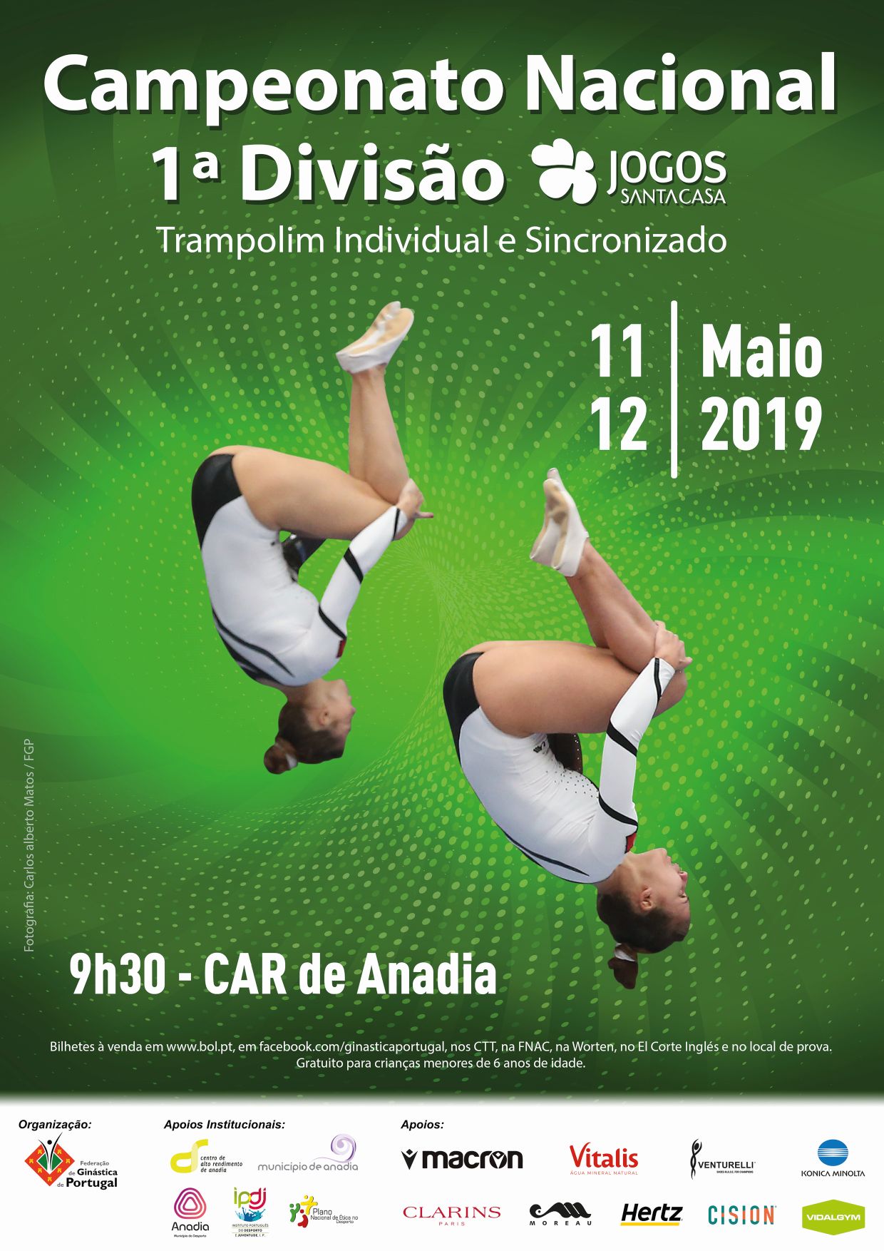 O Centro de Alto Rendimento, em Sangalhos, Anadia, recebe este fim de semana, 11 e 12 de maio, o Campeonato Nacional da 1ª divisão de Trampolim Individual e Sincronizado. As provas têm início às 9h30.