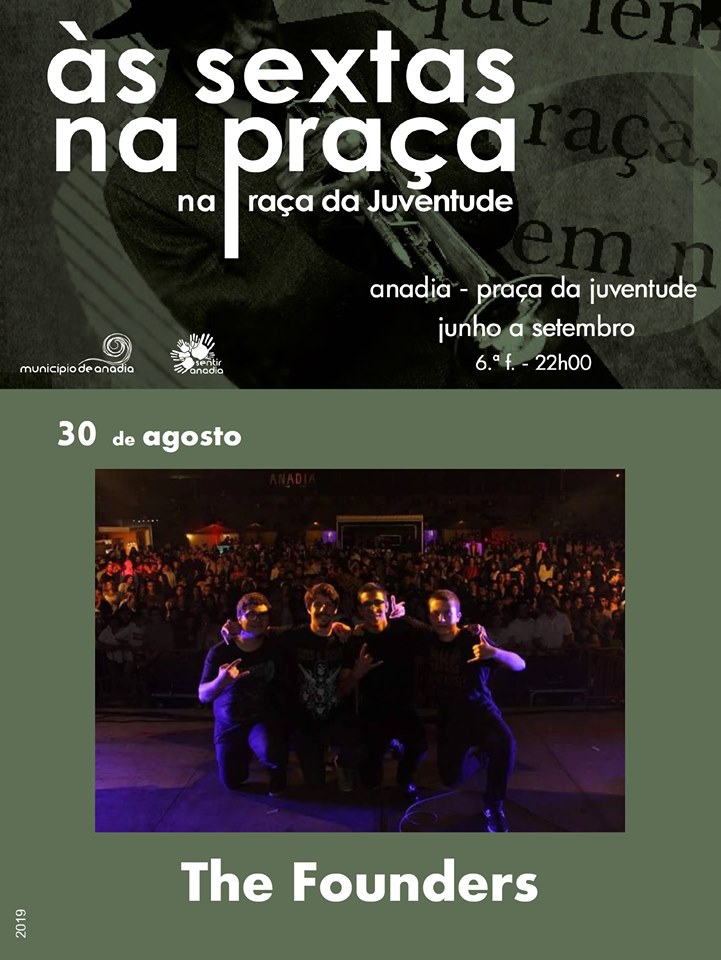 A banda The Founders vai atuar, na próxima sexta-feira, dia 30 de agosto, pelas 22h00, na Praça da Juventude, em Anadia, no âmbito do projeto de animação "Às Sextas na Praça", promovido pelo Municipio de Anadia. Entradas livres.