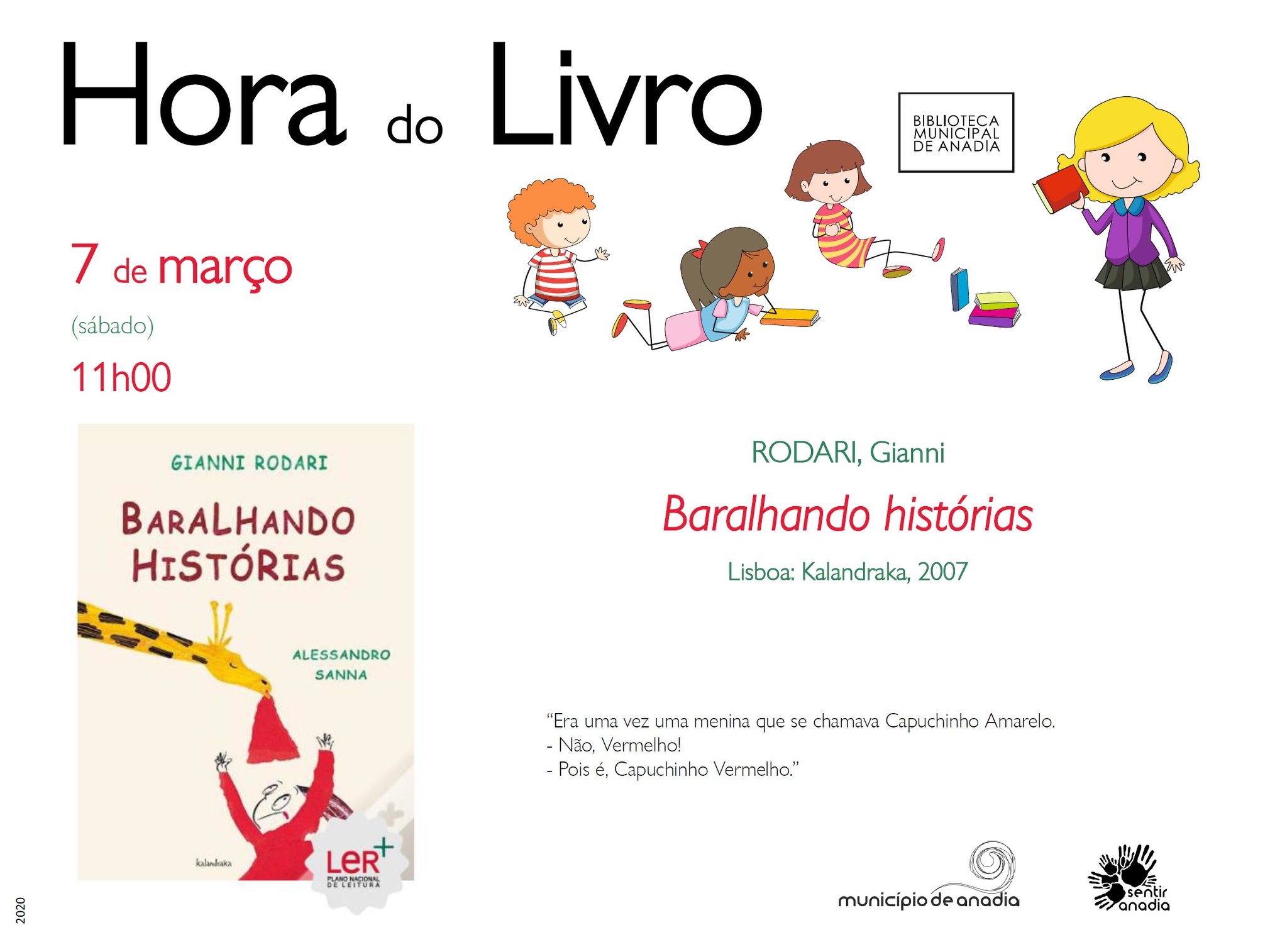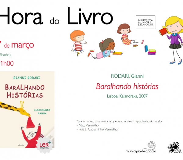 A "Hora do Livro" regressa este sábado, dia 7 de março, pelas 11h00, à Biblioteca Municipal para mais uma sessão, desta feita, dedicada ao livro "Baralhando histórias", de Gianni Rodari.